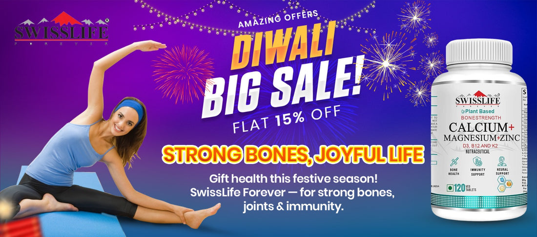 SwissLife Forever Calcium Magnesium Zinc with Vitamin D3, K2 MK7 & B12 | Bone Strength, Immunity & Nerve Health Support | Calcium Supplement for Men & Women | 60 & 120 Tablets