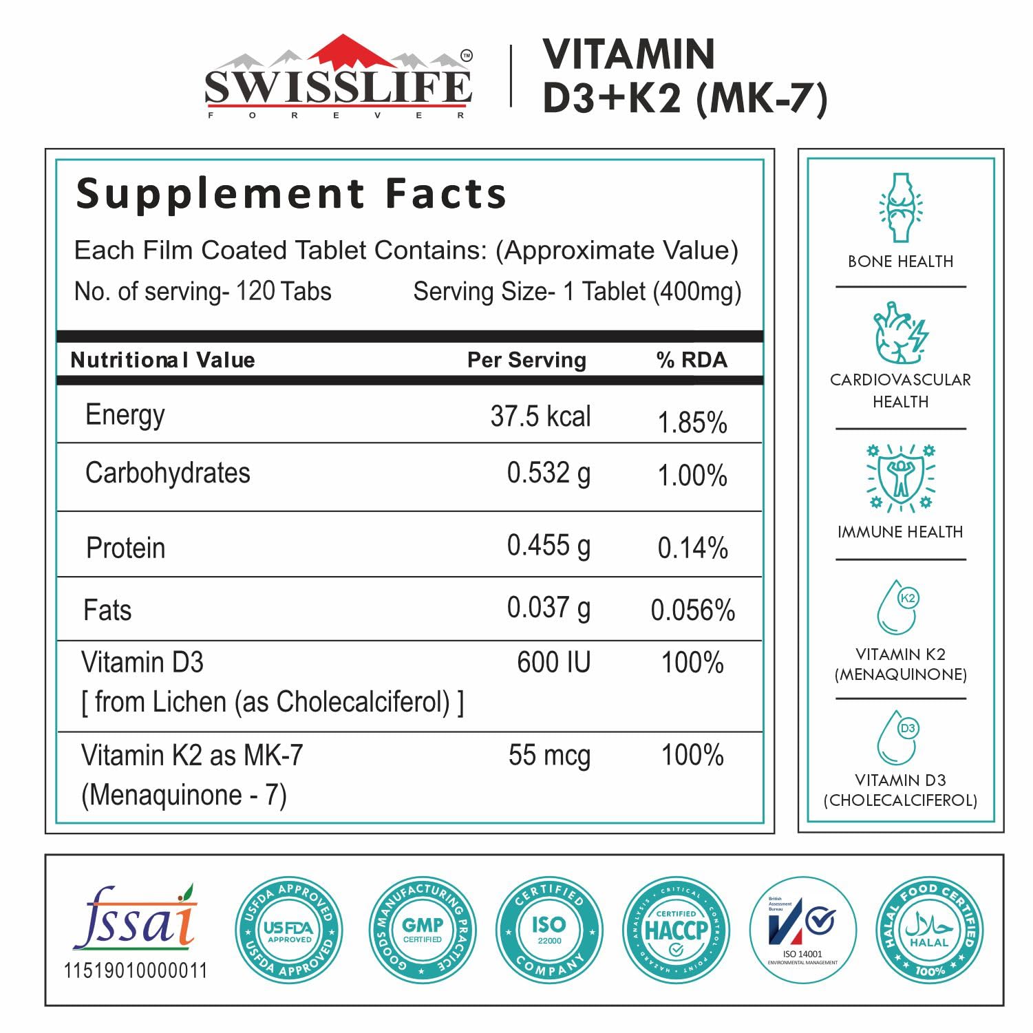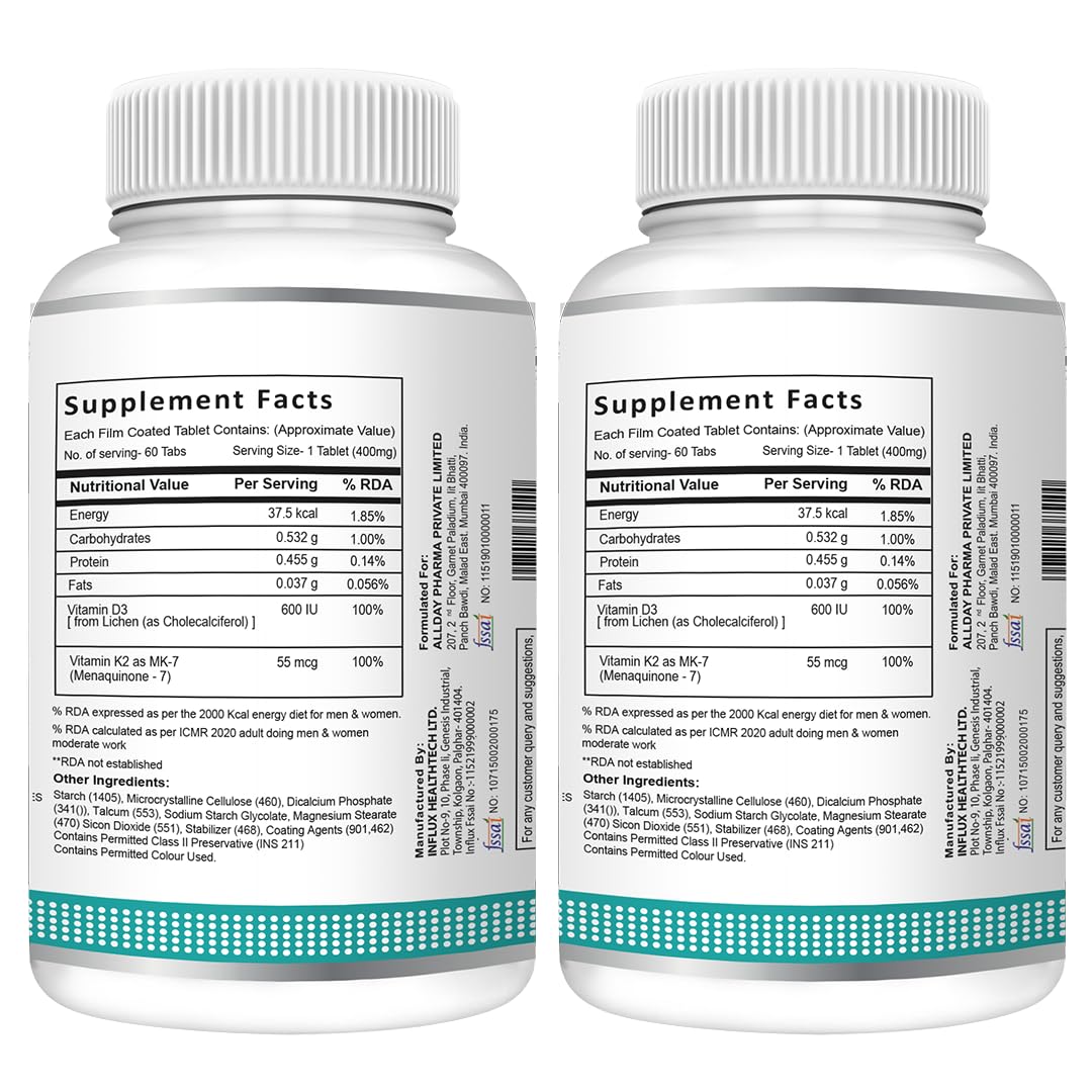 The tablets boast Vitamin D3 sourced from lichen, supporting bone health by aiding in calcium absorption. Additionally, Vitamin K2 (MK7) acts as a facilitator, ensuring calcium reaches the right places, promoting heart health and preventing unwanted calcium build-up.