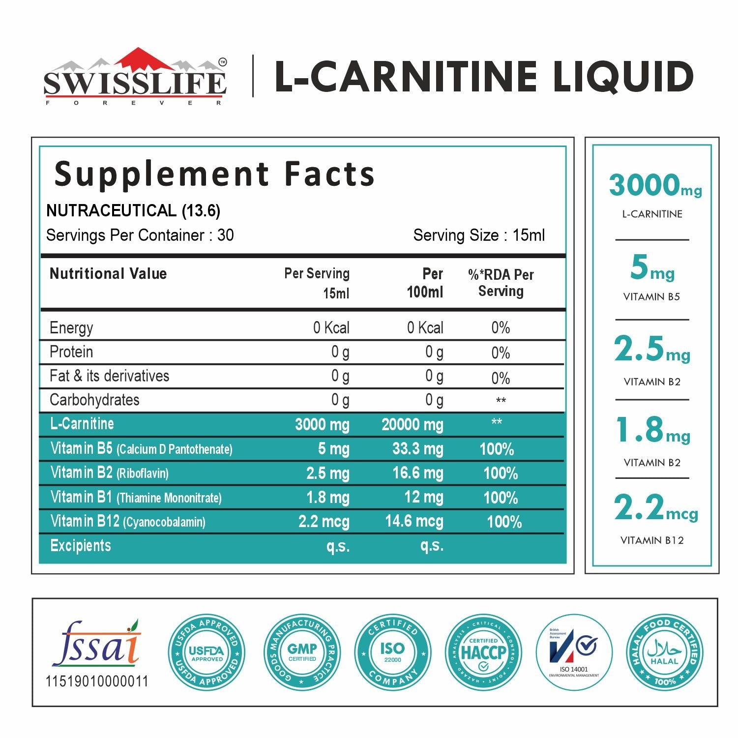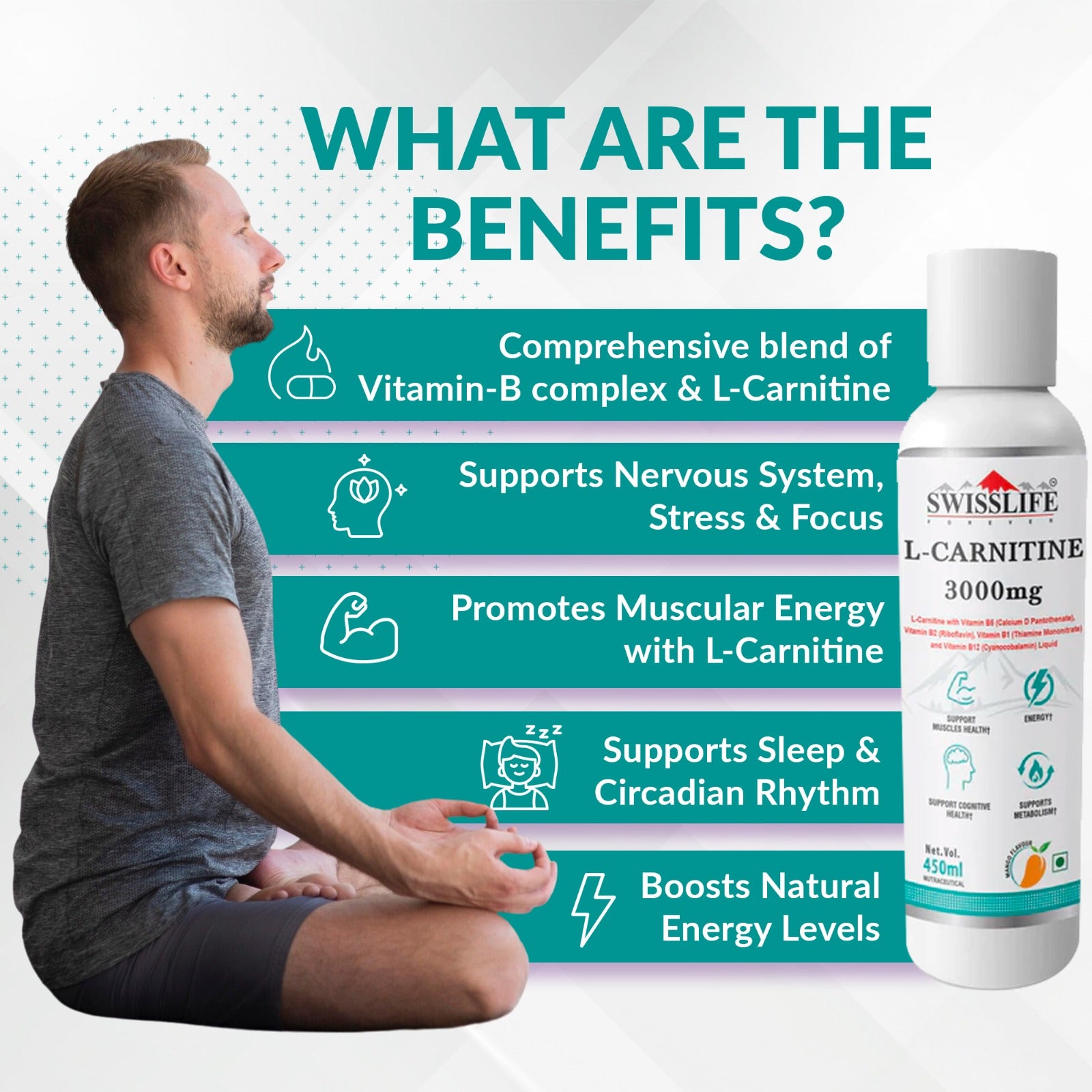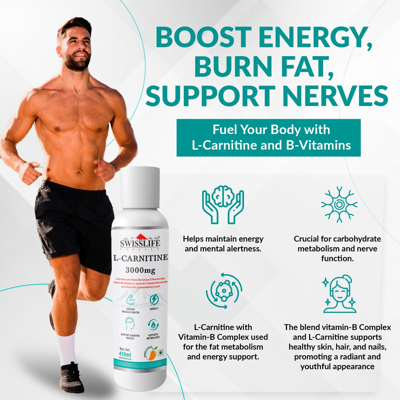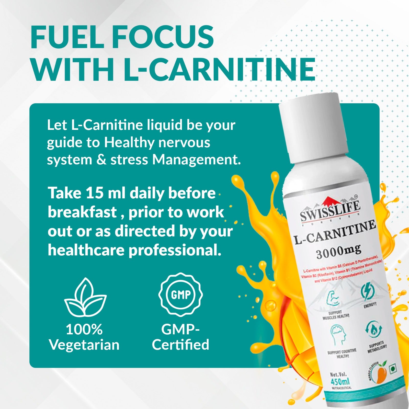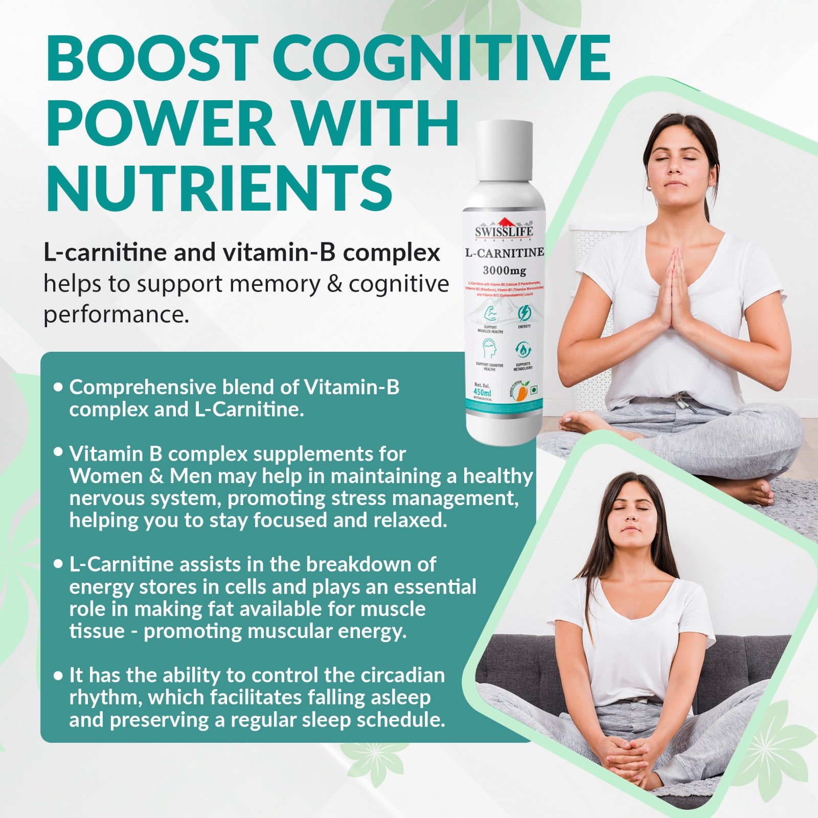 SwissLife Forever L-Carnitine Liquid | With Vitamin B Complex | May Support Healthy Nervous System, Stress Management & Focus | For Men & Women | 60 Tablets