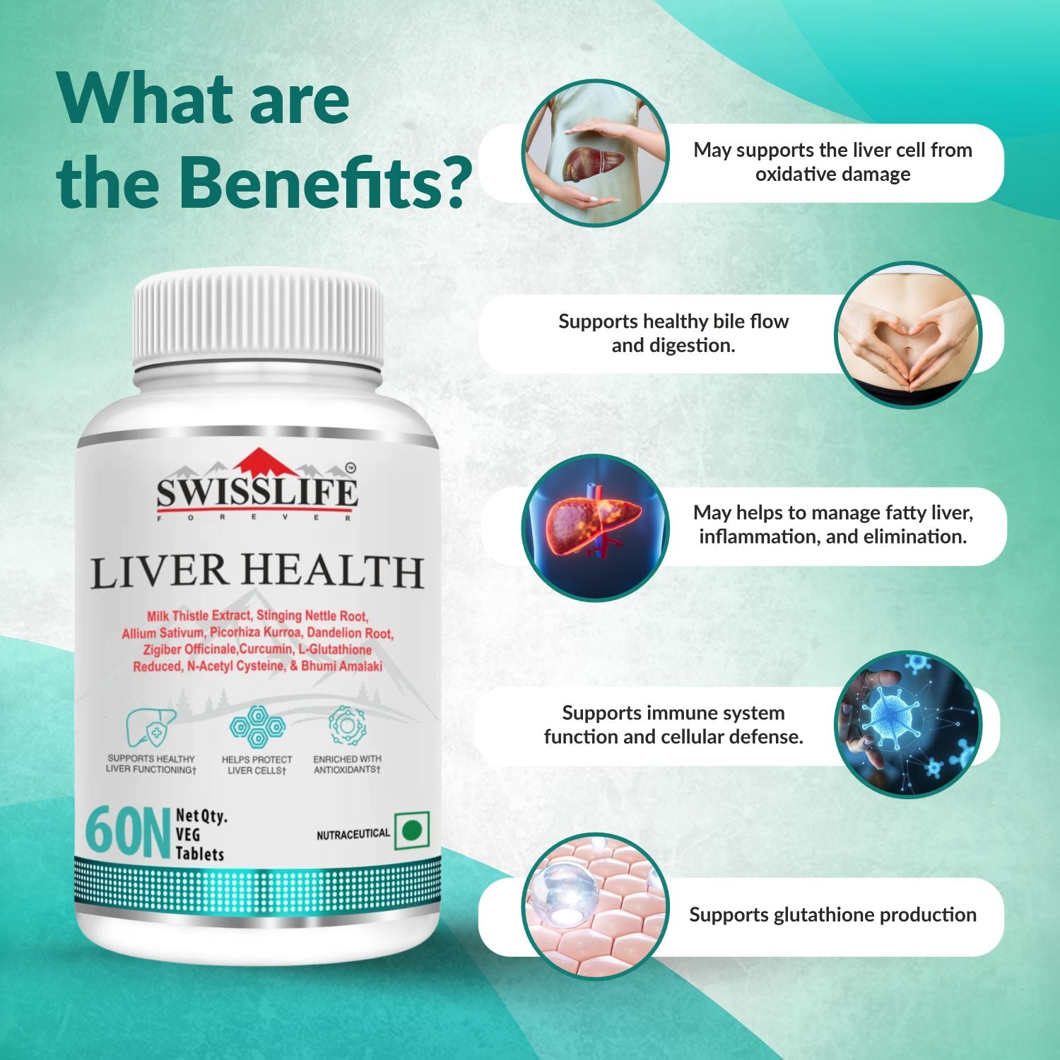 SwissLife Forever Liver Health Tablets | May Support Healthy Bile Flow & Digestion | For Men & Women | 60 Tablets