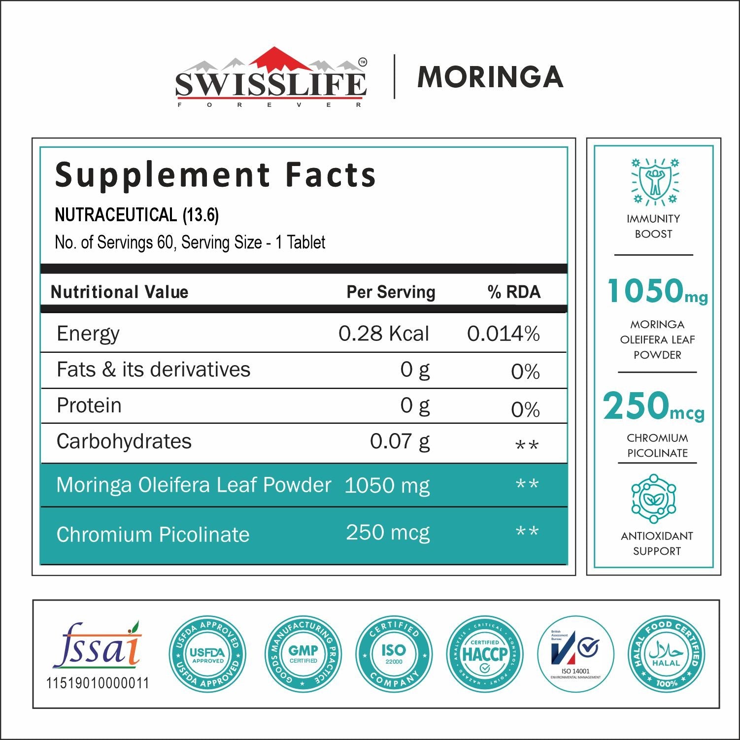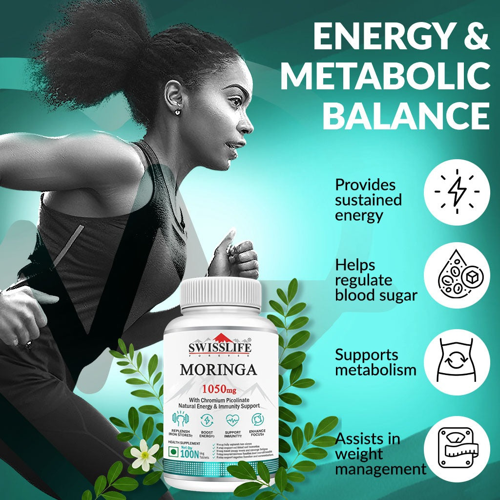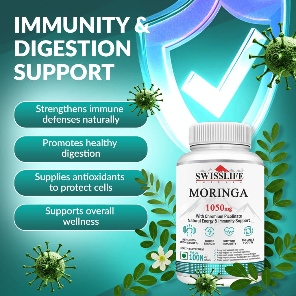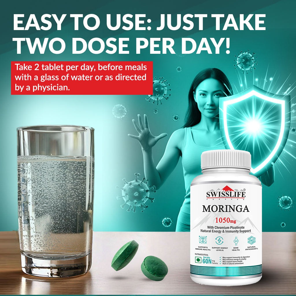 SwissLife Forever Moringa Tablets | Natural Energy & Immunity Support Formula for Digestion, Metabolism, and Overall Wellness | 60 Tablets