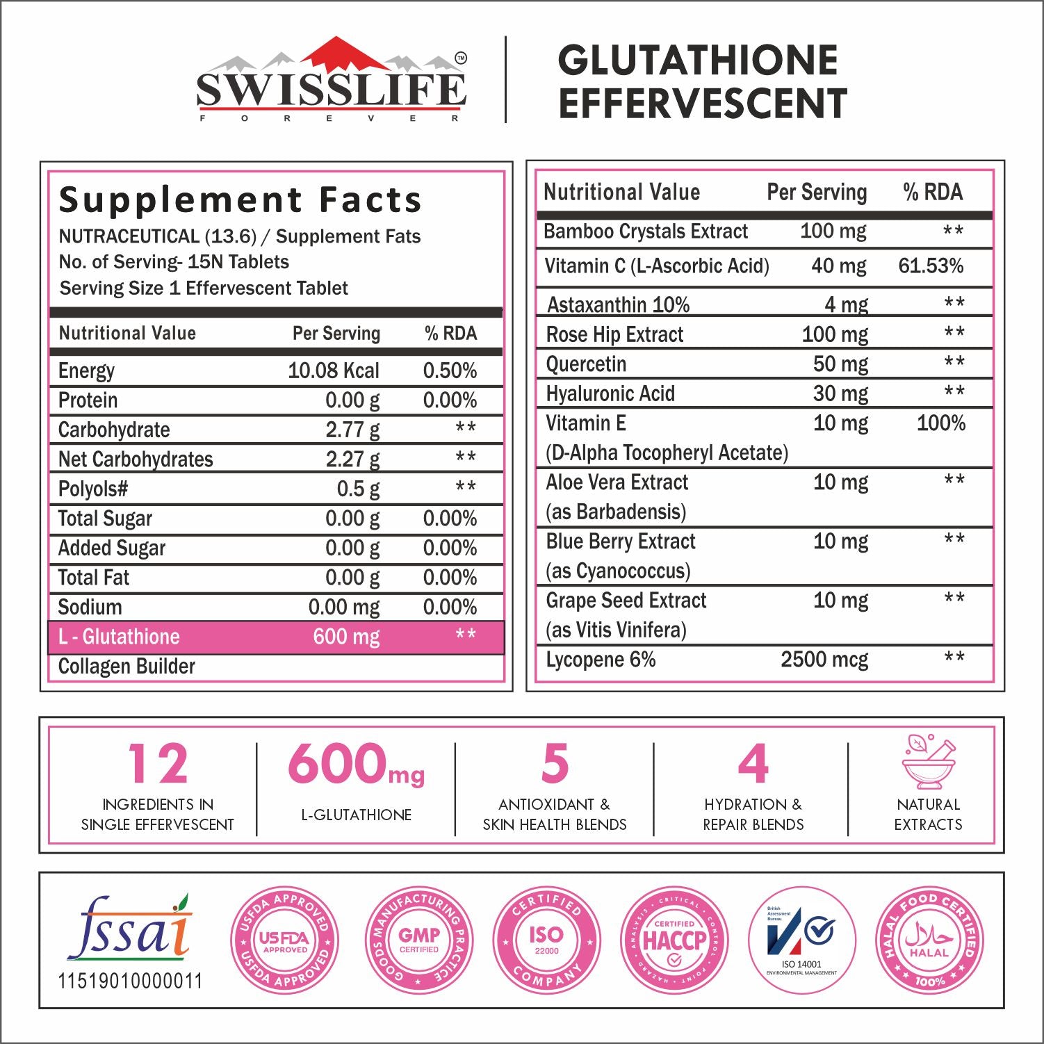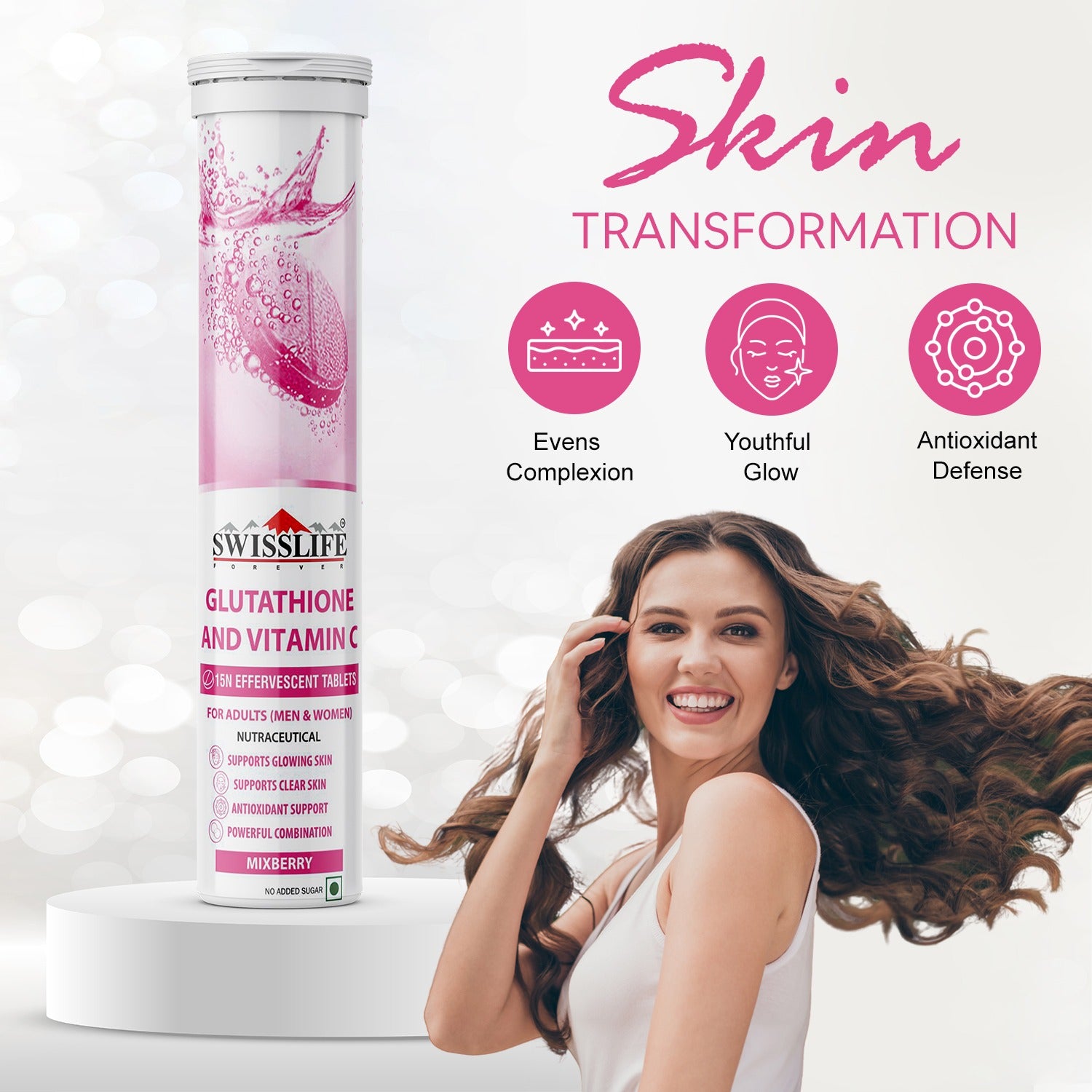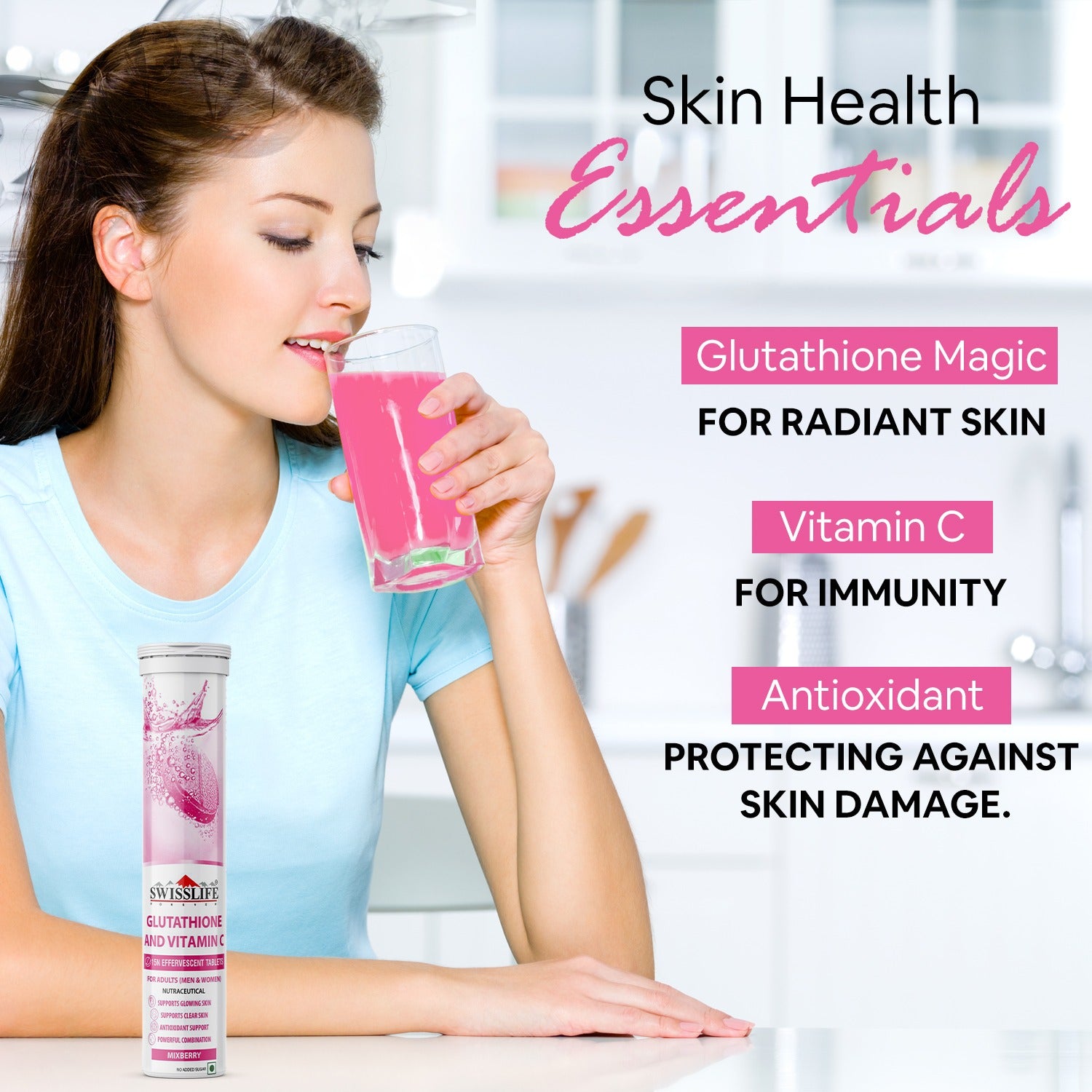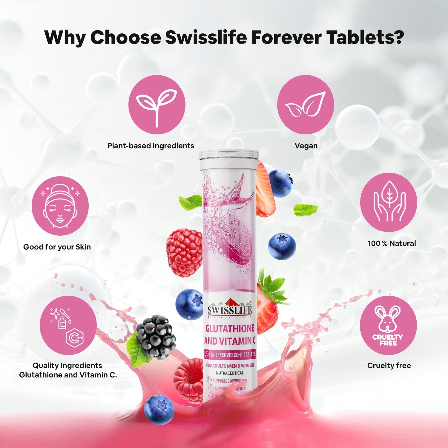✔️ Skin Renewal: Swisslife Forever Glutathione and Vitamin C Effervescent Tablets work together to revitalise your skin. L-Glutathione and Vitamin C help to reduce the appearance of dark spots, blemishes and uneven skin tone, for a brighter and more radiant complexion over time.