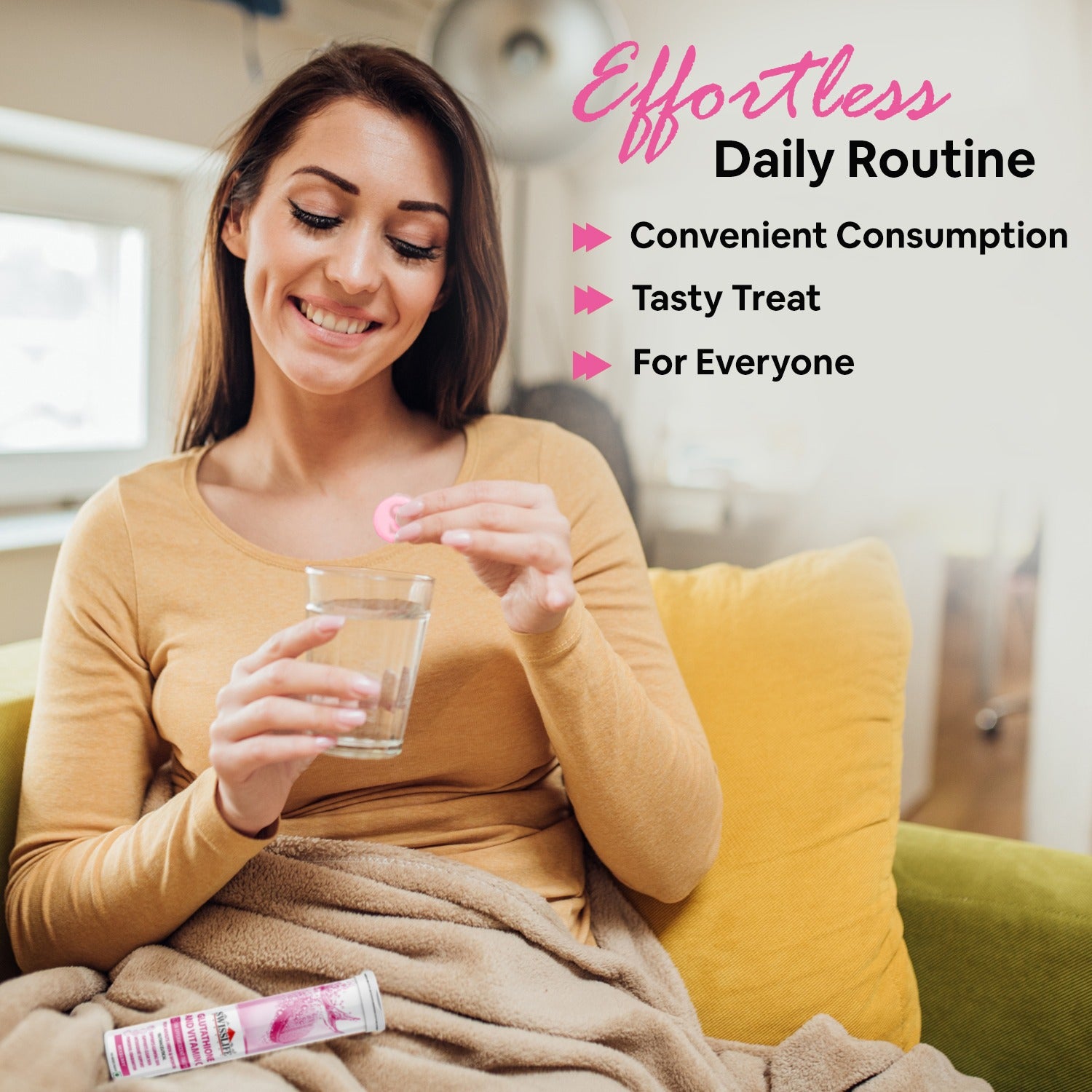 ✔️ Satisfaction Guaranteed: We're confident in the quality of our ingredients, backing our product with a 100% satisfaction guarantee. So, try our tablets with peace of mind. They come in a convenient effervescent form, dissolving easily in water. It's a delicious and hassle-free way to incorporate essential nutrients into your daily routine, promoting skin health and overall well-being.