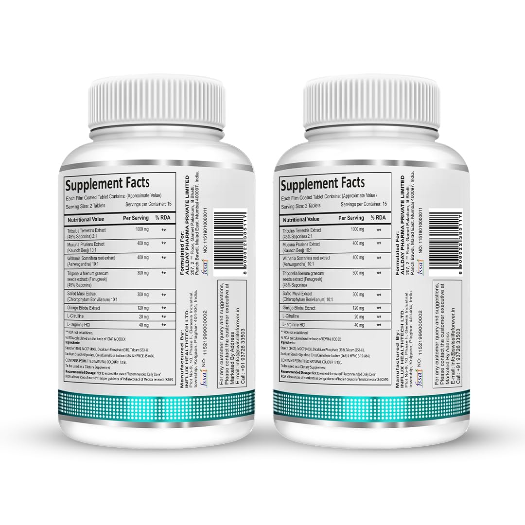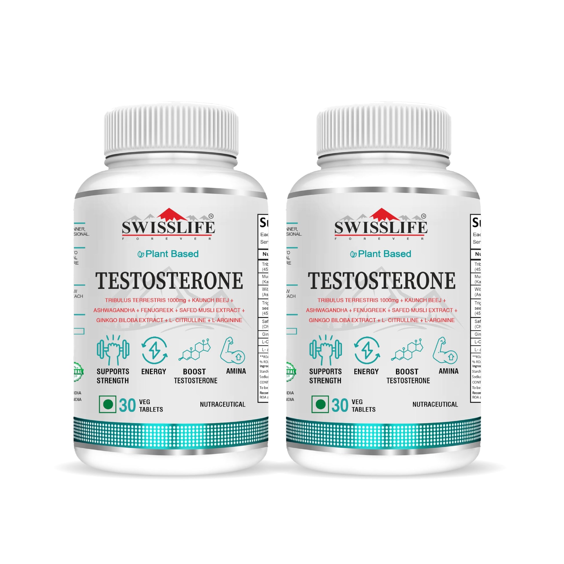 SwissLife Forever Testosterone Supplement for Men | Tribulus 1000mg, Ashwagandha, L-Citrulline, Kaunch Beej | Plant-Based Formula | Supports Strength, Stamina, Energy & Performance | 30 Tablets (Pack of 2)