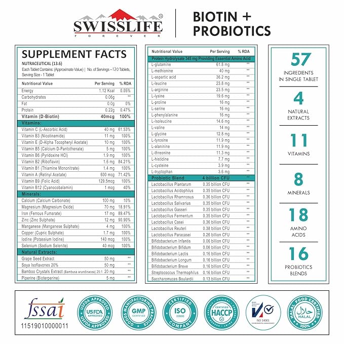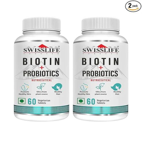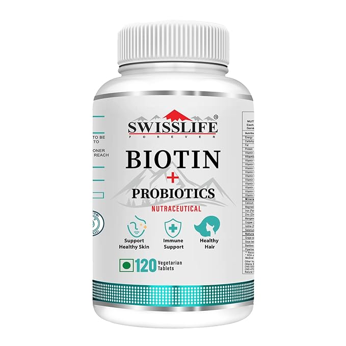 SwissLife Forever Forever Biotin with Probiotics | Hair, Skin & Nail Health Supplement | Plant-Based Biotin Tablets for Men & Women | Supports Hair Growth, Skin Glow & Stronger Nails | (60 & 120 Tablets)
