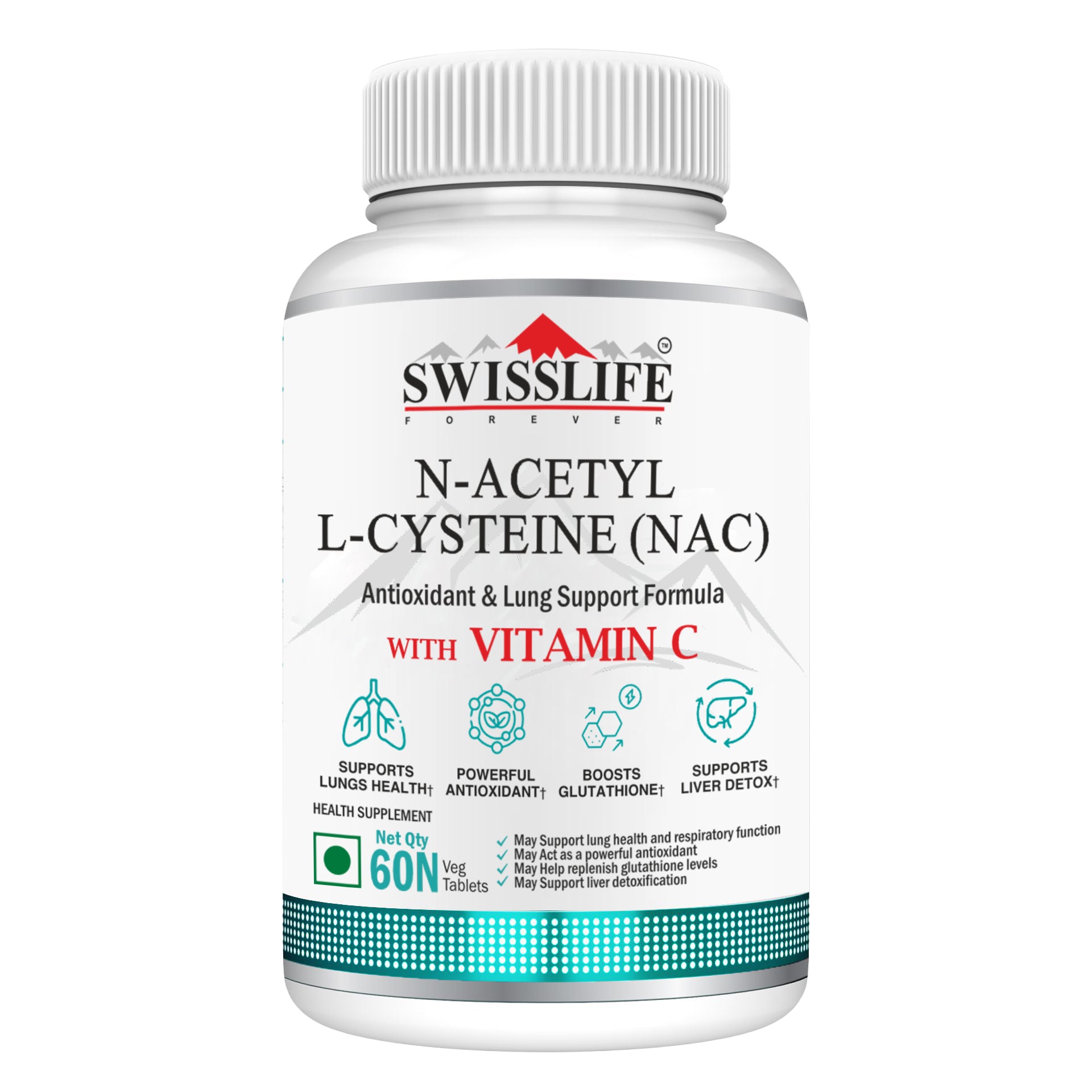 Swisslife Forever N-Acetyl L-Cysteine (NAC) 600mg | Antioxidant & Lung Support Formula for Immunity, Liver Health, and Cellular Protection | 60 Tablets
