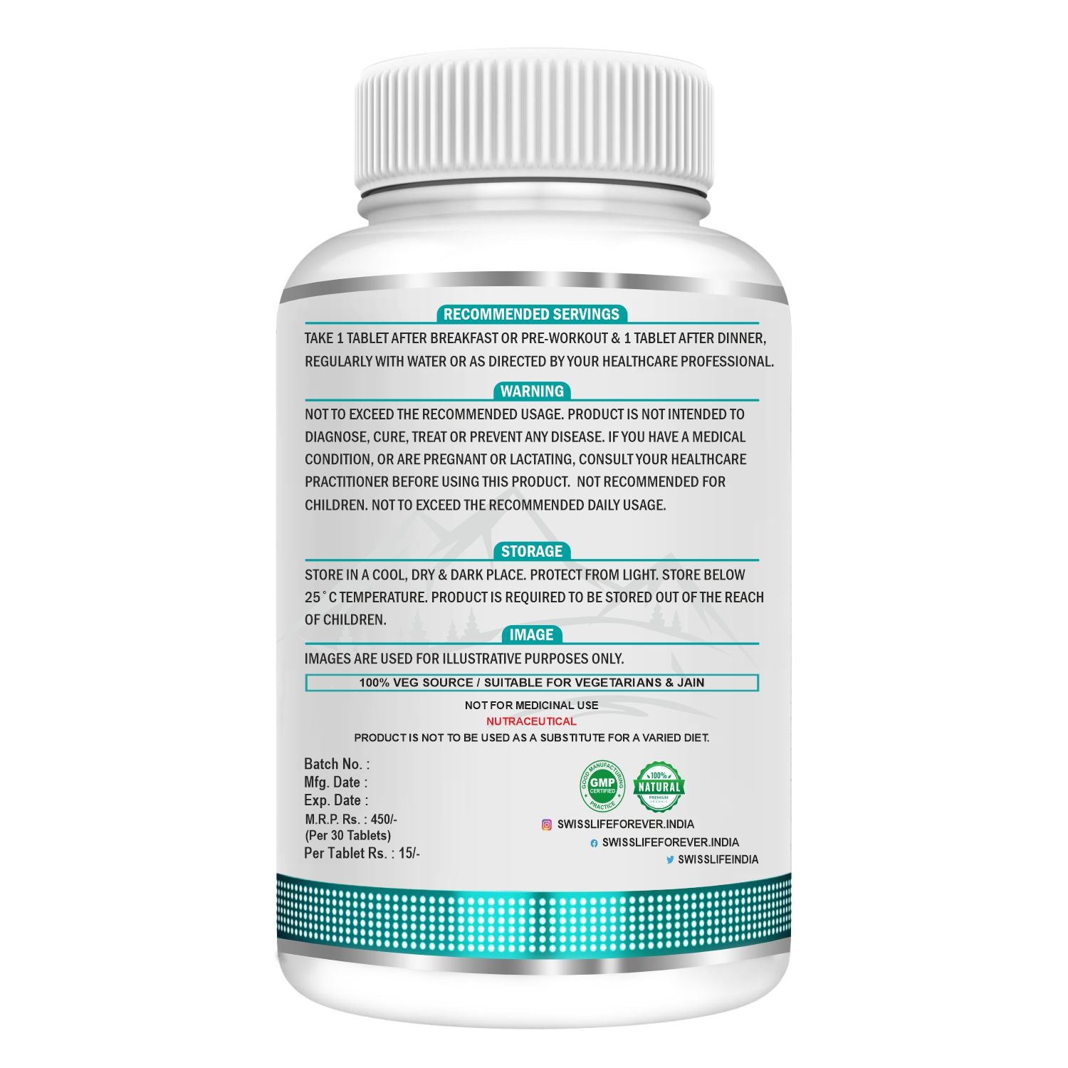 How to Consume -Take 1 tablet after Breakfast or Pre-workout and another tablet after Dinner regularly, accompanied by water for boosted performance and vitality.